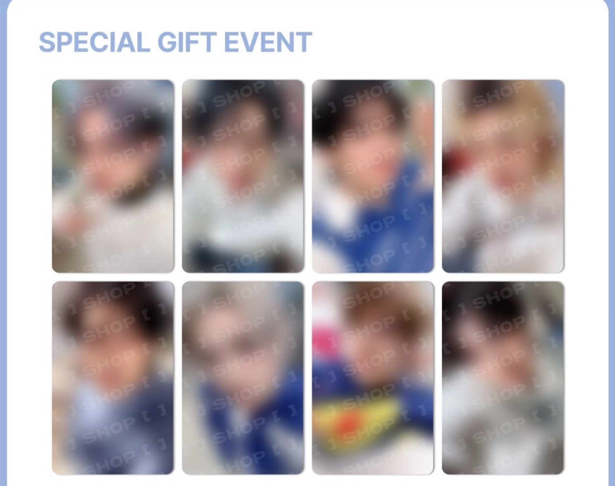 Durante el periodo de preventa recibe 2 photocards random por cada $800 de compra.